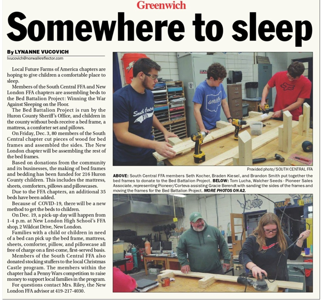 South Central High Schools F.F.A. students successfully built 35 more beds bringing the project total to 251. Awesome job ladies and gentlemen! Keep up the great work! Go S.C.!